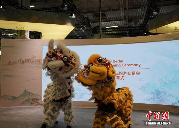 当地时间3月3日,2026年柏林国际旅游交易会(ITB)在柏林会展中心开幕。图为中国展区开幕式上的舞狮表演。中新社记者 马秀秀 摄
