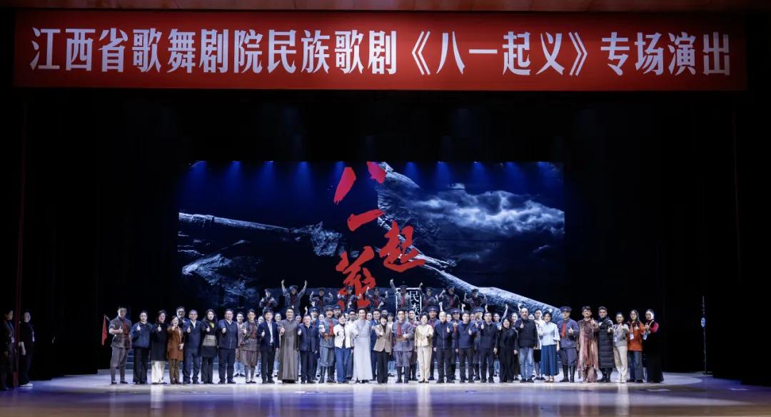 作为扎根江西红色沃土的文艺精品,民族歌剧《八一起义》以八一南昌起义为核心素材,紧扣“党指挥枪”的根本原则,艺术再现了中国共产党独立领导武装斗争、打响武装反抗国民党反动派第一枪、创建人民军队的历史性壮举,生动塑造了毛泽东、周恩来、贺龙等革命先辈坚守信仰、挺身而出的鲜活形象。该剧汇聚国内一流创作力量,总导演黄定山,编剧岩奇、王晓岭、黄定山,作词王晓岭、岩奇,作曲栾凯,指挥王燕、制作人杜欢领衔打造,为作品的思想高度与艺术品质筑牢根基。自2024年1月首演以来,该剧已累计演出58场,足迹遍布大江南北,让红色火种在各地持续传递。
